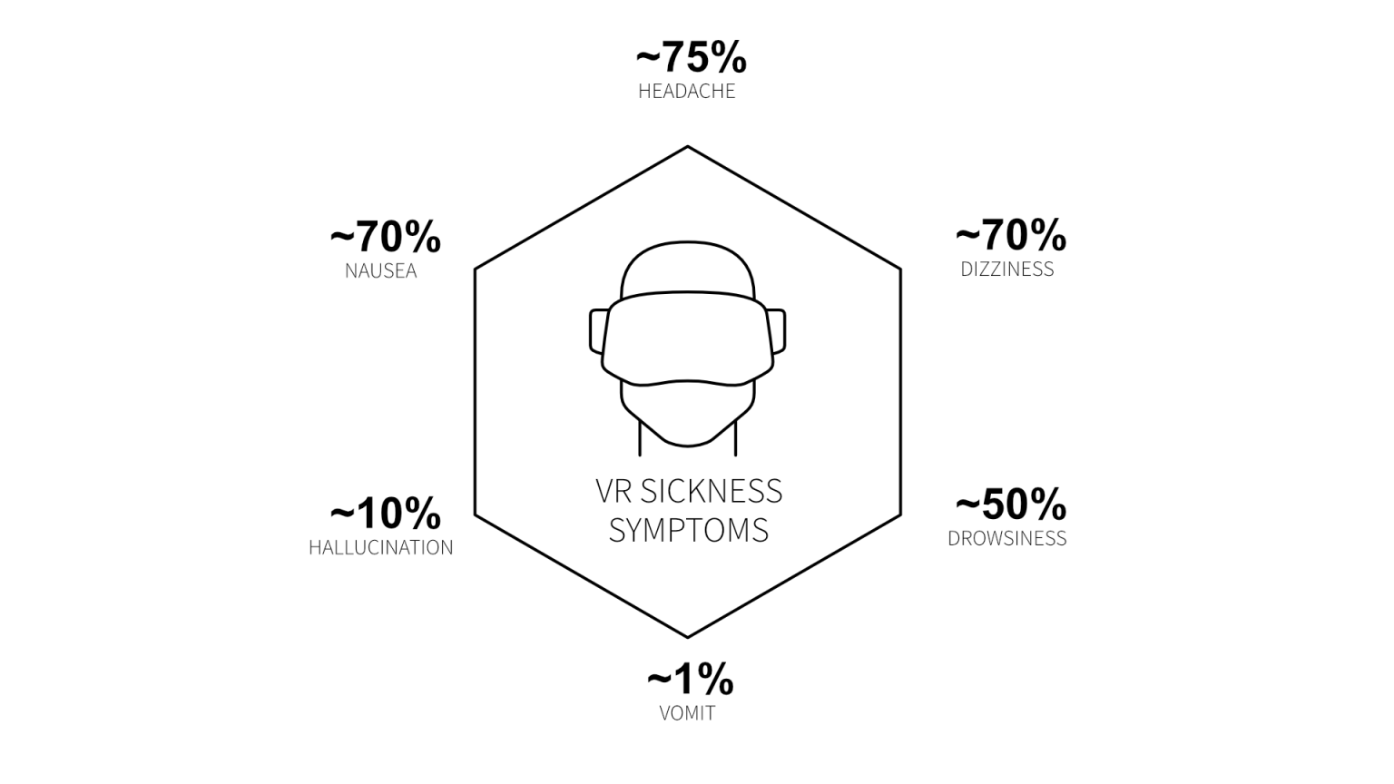 由于MDPI的Jiwon Lee,Mingyu Kim和Jinmo Kim撰寫的科學文章,我們能夠代表考慮到VR病的那些令人驚訝的數據。數字顯示100%的參與者感受到了虛擬現實的影響。90%的用戶感到VR病的偶然影響,而10%的接受調查的志愿者對他們的皮膚造成嚴重后果。疾病水平變化的主要原因是志愿者使用模擬器的復雜性。