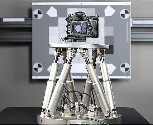 攝像機運動的模擬可以通過多軸運動系統進行,對于平滑運動和頻率范圍的最高要求。這種無摩擦系統提供高達幾十赫茲的模擬頻率,具有極低的機械噪音(彎曲而不是滾珠/滾柱軸承)。它以高軌跡精度運行預定義的運動曲線、正弦曲線和可自由定義的路徑。